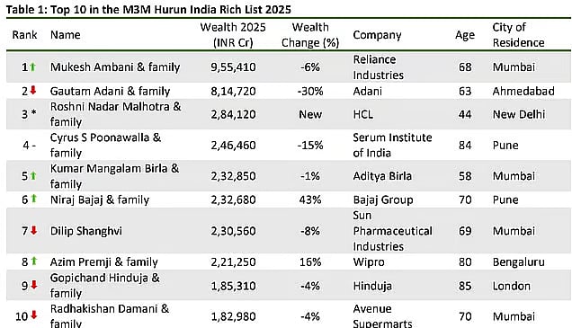 या वेळी १६८७ श्रीमंतांचा समावेश या यादीत केला आहे. त्यांची संपत्ती हजार कोटी रुपयांपेक्षा जास्त आहे. यात २८४ नवे चेहरे आहेत. मुंबईतून सर्वाधिक ४५१ लोकांचा समावेश झाला आहे. त्यानंतर दिल्ली (२२३) आणि बेंगळुरू (११६) यांचा क्रम लागतो. या यादीत १०१ महिला आहेत.